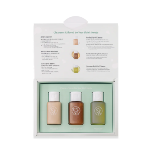 منظف جيلي أويل كومبو (30 مل)، منظف كومبو هايدراتينغ ديلي (30 مل)، منظف روزماري ريليف جل (30 مل). للمرادين اختيار المنظف حسب حالة البشرة. للبشرة الحساسة. لمن يريدون تجربة منظفات كاين قبل الشراء