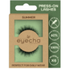 نصف رموش مثالية للعيون الصغيرة. تطبيق سريع خلال ثوان. لا حاجة للصمغ. مصنوعة يدوياً ونباتية. قابلة لإعادة الاستخدام حتى 6 مرات. تغليف قابل للتحلل 100%. غراء الرموش غير مُضمّن